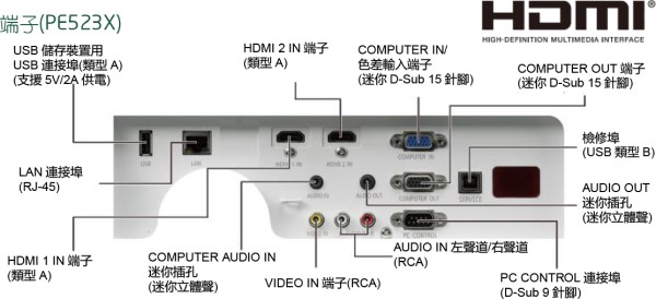 PE523X具備XGA原生解析度,搭配Advanced AccuBlend技術,最大可支援WUXGA (1,920 x 1,200) 解析度